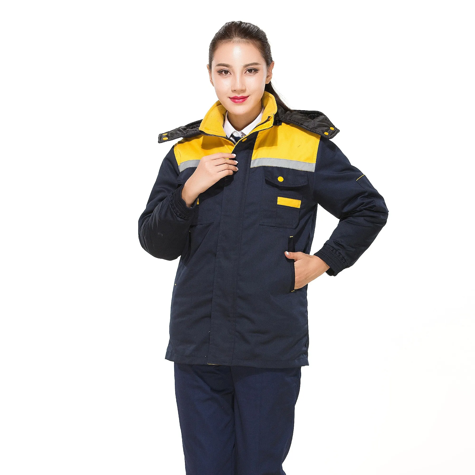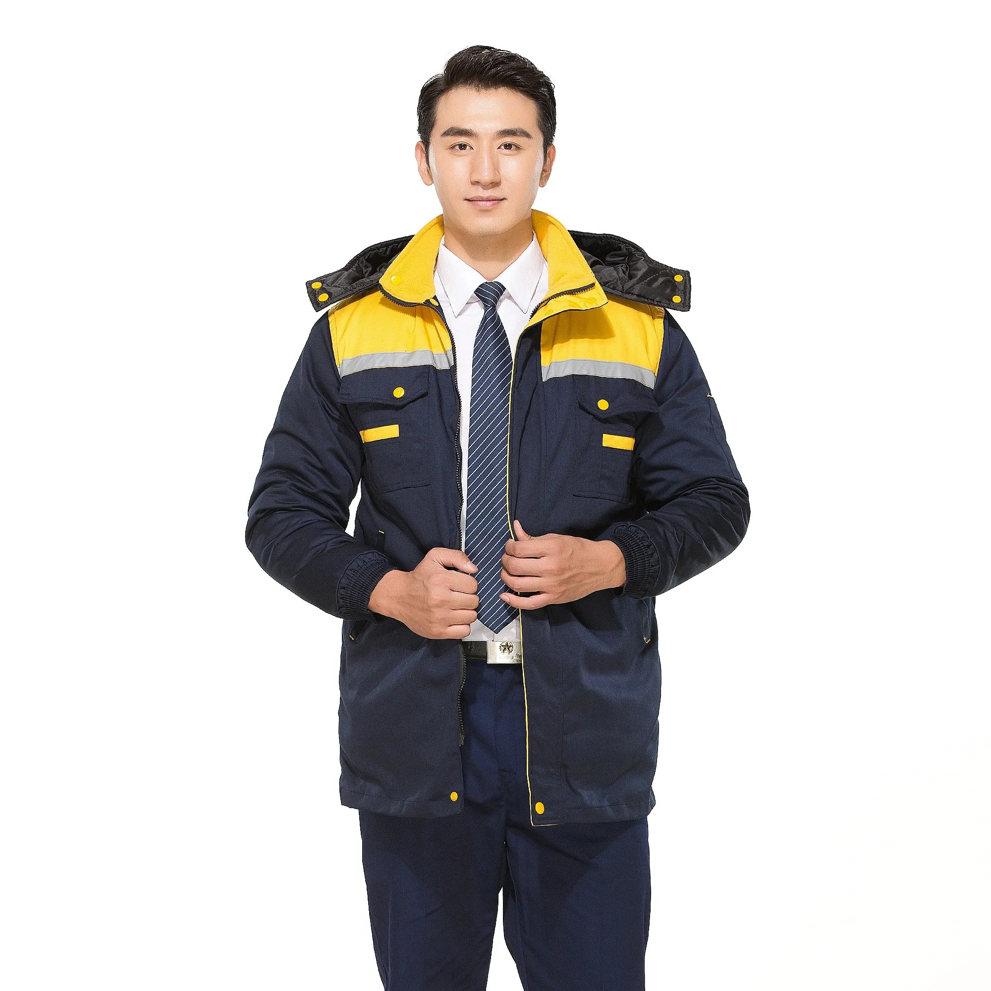 Black and yellow winter workwear, supporting custom style design, with the option to print text and logos