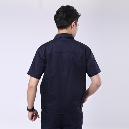 Navy blue short sleeved workwear, supports customized style design, and can print logos